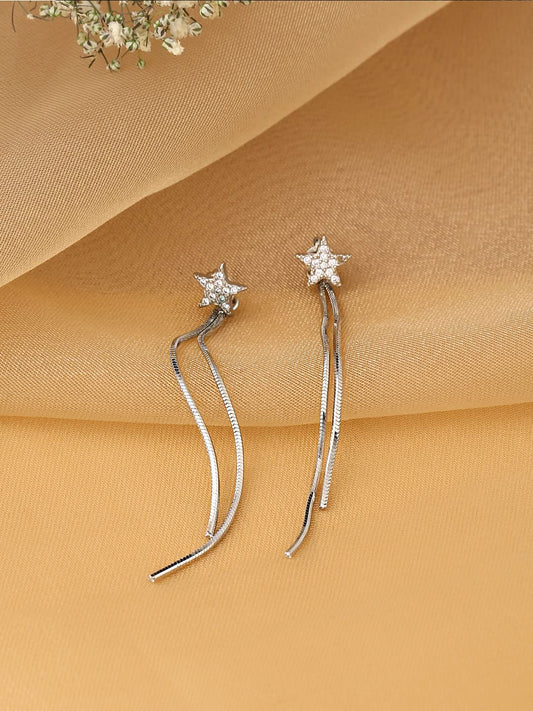 Earrings for Women and Girls Silver Crystal Dangler | Silver Toned Star Shaped Long Chain Danglers Earrings for Women | Birthday Gift for girls and women Anniversary Gift for Wife