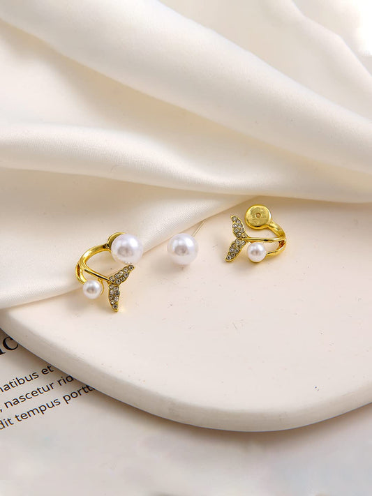 Earrings for Women and Girls Studs for Women | Gold Toned Fish Tail Shaped Pearl Stud Earrings | Birthday Gift for girls and women Anniversary Gift for Wife
