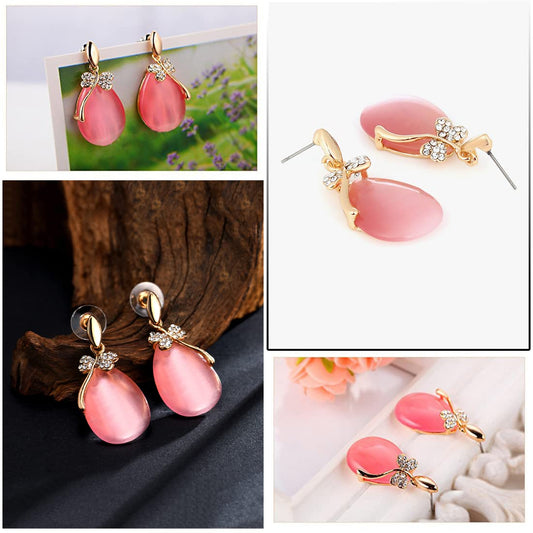 Kairangi Earrings for Women and Girls | Fashion White Crystal and Pink Opal Drop | Gold Plated Drop Earring | Oval Shaped Drop Earrings | Birthday Gift for Girls and Women Anniversary Gift for Wife