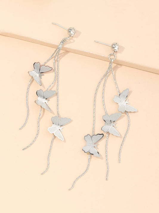 Earrings for Women and Girls Silver Crystal Dangler | Silver Toned Butterfly Long Chain Danglers Earrings for Women | Birthday Gift for girls and women Anniversary Gift for Wife