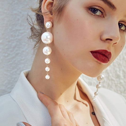 Earrings for Women and Girls Fashion White Pearl Dangler Earrings | Gold Plated Long Dangler Earrings | Birthday Gift for Girls & Women Anniversary Gift for Wife