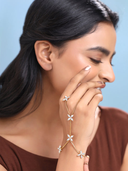 Hand Chain For Women Gold Toned Flower Crystal Graceful Hand Chain For Women and Girls