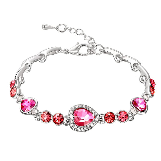 Bracelet for Women and Girls | Pink Crystal Stone Heart Shaped Silver Tone Crystal Bracelet | Birthday Gift for Girls and Women Anniversary Gift for Wife