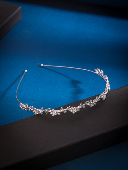Tiara for Women and Girls Silver Plated Crown for Women Leafy Floral Crystal Studded Bridal Wedding Crown Tiaras for Women and Girls Gift For Women & Girls Valentine Gift for Girls