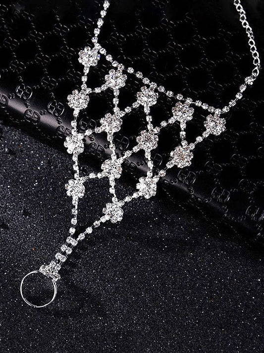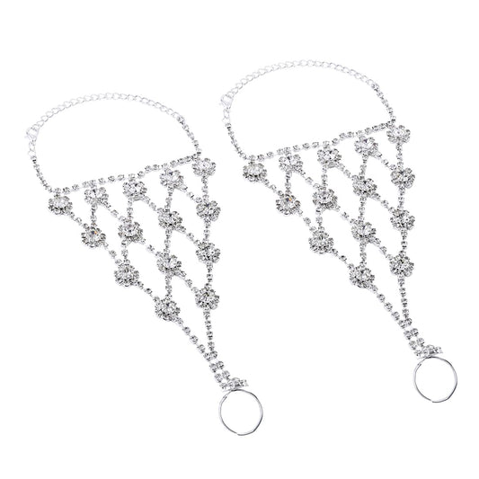 Crystal Anklets with Toe Ring for Women Beach Anklet Chain with White Crystals Lady's Beach Wedding Foot Jewelry For Women and Girls