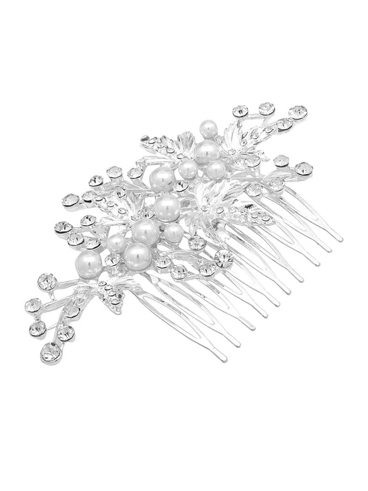 Comb Pin for Women Hair Accessories for Women Floral Comb Clips for Hair for Women White Pearl Hair Pin Bridal Hair Accessories for Wedding Side Pin / Comb Pin / Jooda Pin Accessories for Women