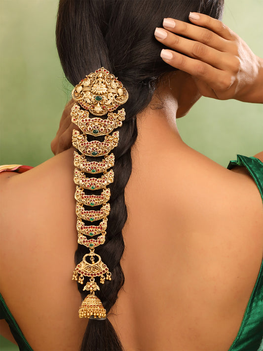 Choti Jadai Billai Traditional Multicolor Bridal Hair Accessories for Women Wedding Gold Plated Hair Choti Bridal Jewellery for Women (Gold-7)