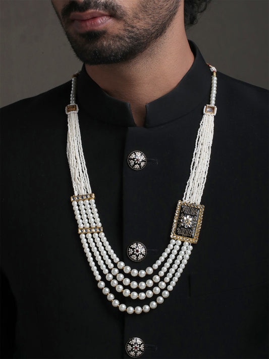 Dulha Mala: Men's Gold Beads Pearl Necklace | Free Size | Wedding Accessory