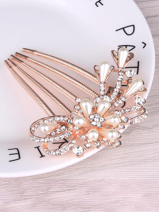 Comb Pin for Women Hair Accessories for Women Floral Comb Clips for Hair for Women Rosegold Crystal Hair Pin Bridal Hair Accessories for Wedding Side Pin / Comb Pin / Juda Pin Accessories for Women