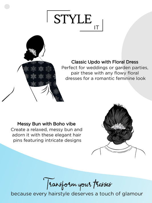 Comb Pin for Women Hair Accessories for Women Floral Comb Clips for Hair for Women Western Crystal Hair Pin Bridal Hair Accessories for Wedding Side Pin / Comb Pin / Juda Pin Accessories for Women