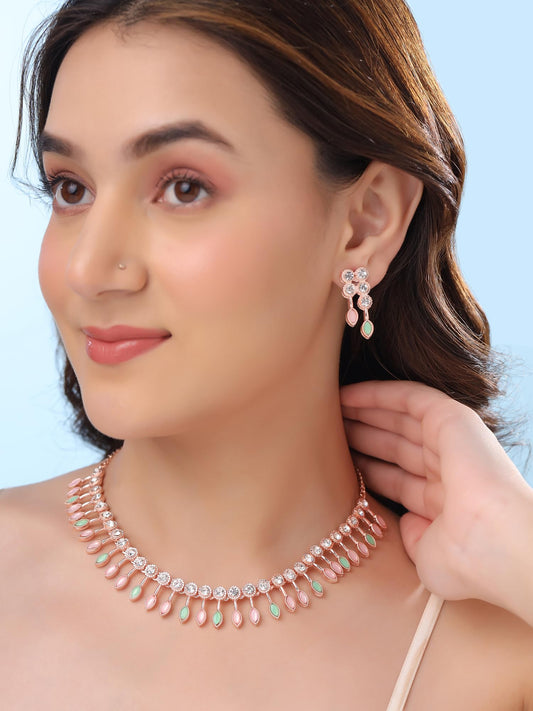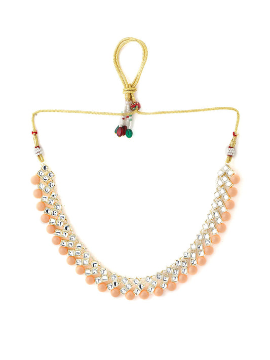 Jewellery Set for Women and Girls Traditional Peach Color Stotne Jewellery Set for Wedding Gold Plated Choker Necklace Set | Birthday Gift for girls and women Anniversary Gift for Wife