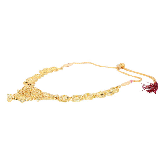 Ethnic One Gram Gold Designer Antique Golden Traditional Choker Necklace With Earrings Wedding Jewellery Set for Women & Girls
