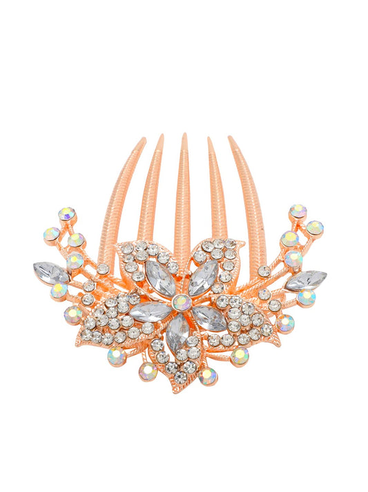 Comb Pin for Women Hair Accessories for Women Floral Comb Clips for Hair for Women Western Rosegold Crystal Hair Pin Bridal Hair Accessories for Wedding Side Pin / Comb Pin / Juda Pin Accessories for Women