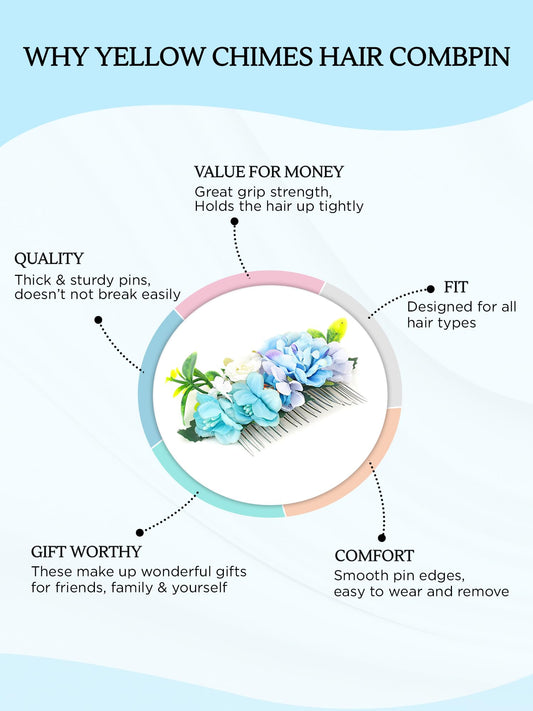Comb Pin for Women Hair Accessories for Women Floral Hair Pins for Women Artificial Floral Hair Pin Bridal Hair Accessories for Wedding Side Pin/Hair Clip/Juda Pin Accessories for Women