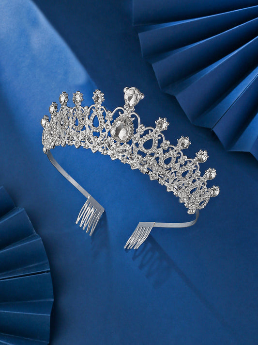 Tiara for Women and Girls Silver Crown for Women White Crystal Studded Bridal Wedding Crown Tiaras for Women and Girls Gift For Women & Girls Valentine Gift for Girls