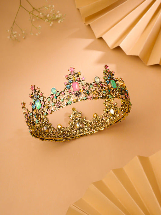 Tiara for Women and Girls Gold Plated Crown for Women Multicolor Crystal Studded Bridal Wedding Crown Tiaras for Women and Girls Gift For Women & Girls