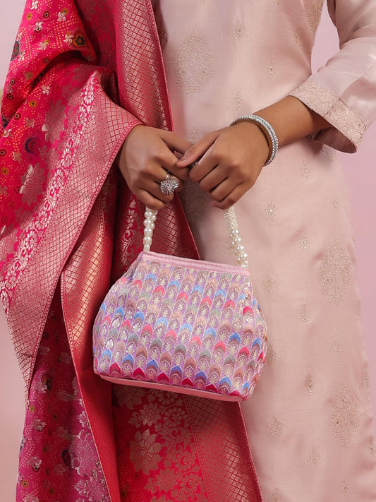 Potli Bags For Ladies For Wedding | Traditional Potli Handbags For Women | Pearl Beaded Wristlet Handmade Embroidery Worked Potli Bag | Ideal for Parties Weddings or Traditional Events