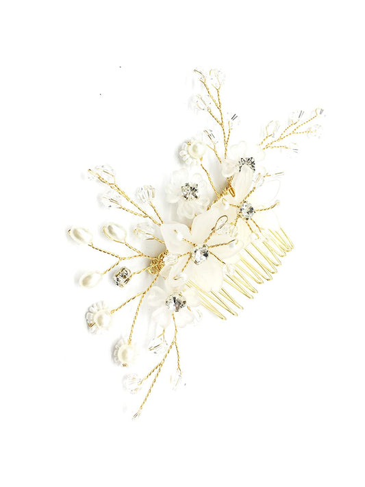 Comb Pin for Women Hair Accessories for Women Floral Comb Clips for Hair for Women White Crystal Hair Pin Bridal Hair Accessories for Wedding Side Pin / Comb Pin / Juda Pin Accessories for Women