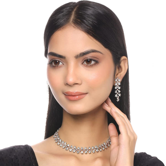 Jewellery Set for Women and Girls White Crystal Bridal Jewellery Set for Wedding Bridal Jewellery Set | Birthday Gift for Girls & Women Anniversary Gift for Wife