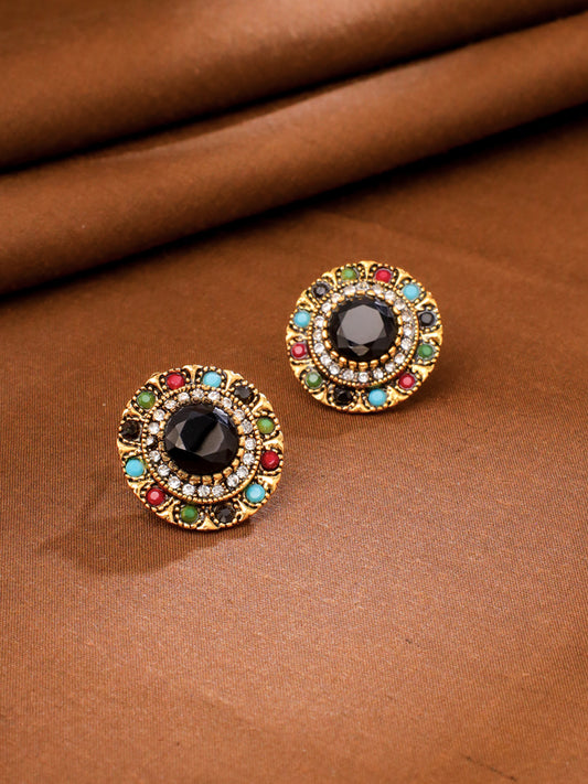 Earrings for Women and Girls Black Studs Earring Gold Plated Multicolor Stoned Earring | Western Floral Big stud | Birthday Gift for Girls and Women Anniversary Gift for Wife