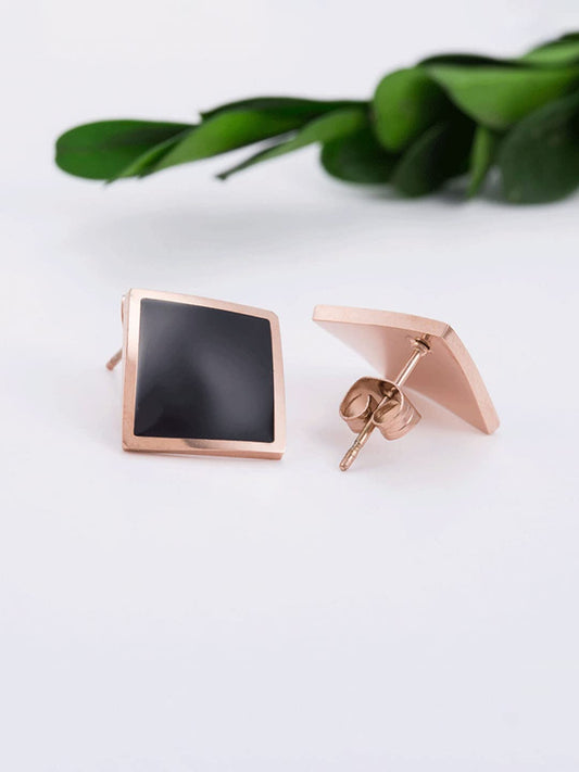 Stud Earrings for Women Western Rose Gold Plated Stainless Steel Black Square Stud Earrings For Women and Girls