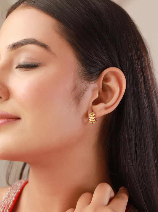 Crystal Hoop Earrings For Women | Leafy Design | Western/Birthday/Anniversary Gift | Gold Plated Hoops | Elegant Women Earrings.
