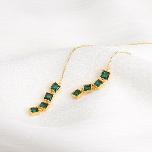 Earrings for Women and Girls Fashion Green Crystal Threader Earrings | Gold Plated Western Style Long Chain Earrings | Birthday Gift for Girls & Women Anniversary Gift for Wife