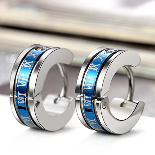 Hoop Earrings for Men Roman Numbers Western Style 316L Stainless Steel Blue Hoop Earrings for Men and Women