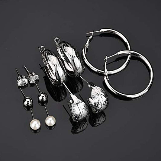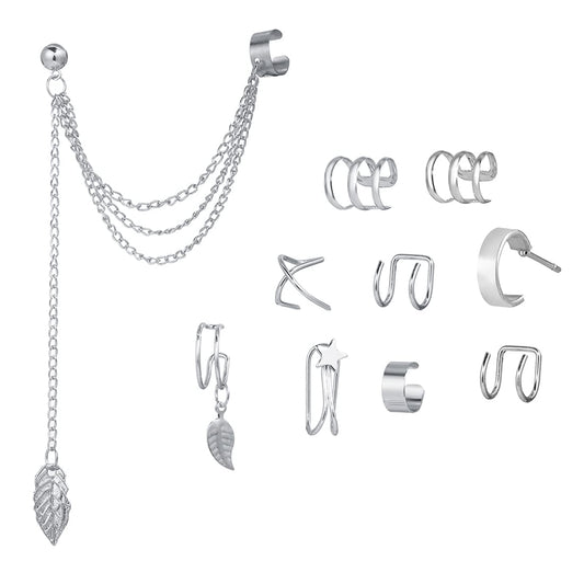 Earrings for Women and Girls Fashion Silver Ear Cuff Set | Silver Tone Ear Cuff | Western Stainless Steel Combo | Birthday Gift for Girls and Women Anniversary Gift for Wife…