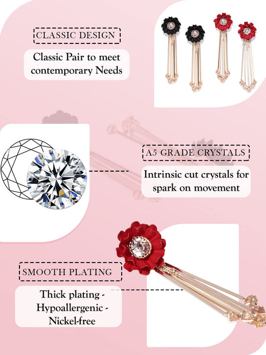 Red and Black Crystal Stone & Stud Earrings Set | Fashionable Western Style Earrings Combo for Girls & Women |