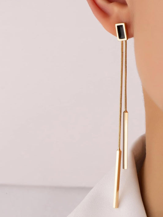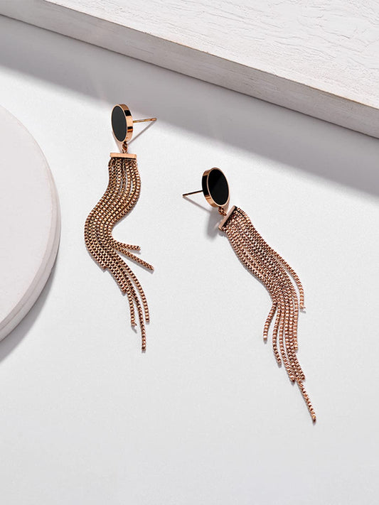 Danglers Earrings for Women Western Rose Gold Plated Stainless Steel Black Long Chain Danglers Earrings For Women and Girls