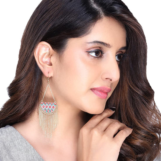 Dangler Earrings for Women Fashion Women Earrings | Gold Plated Hanging Chain Danglers Earrings for Girls | Long Western Earrings | Birthday Gift For Girls Anniversary Gift for Wife
