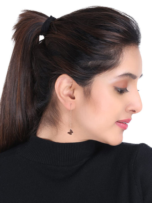 Threader Earrings for Women Western Rose Gold Plated Stainless Steel Butterfly Shaped Threader Earrings For Women and Girls Valentine Gift for Girls