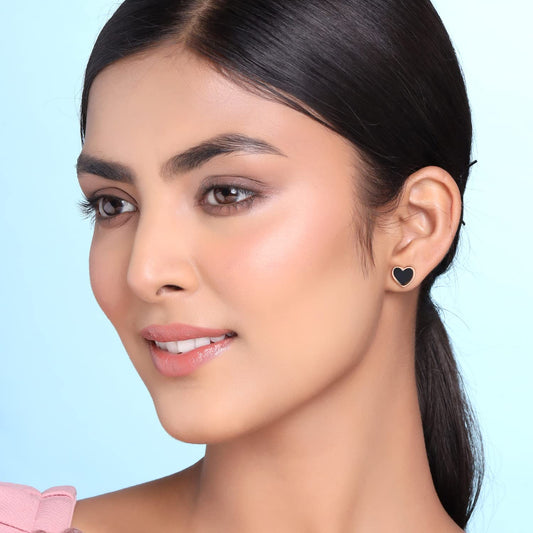Earrings for Women and Girls Fashion Black Studs | Rose Gold Plated Valentine Special Western Stainless Steel stud Earrings | Birthday Gift for girls and women Anniversary Gift for Wife