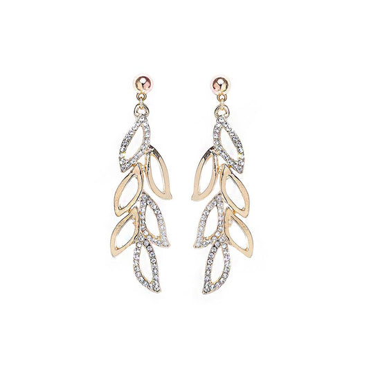 Earrings for Women and Girls | Gold Plated Crystal Studded Dangler Earrings | Leaf Shaped Western Long Dangler Earrings | Birthday Gift for girls & women Anniversary Gift for Wife