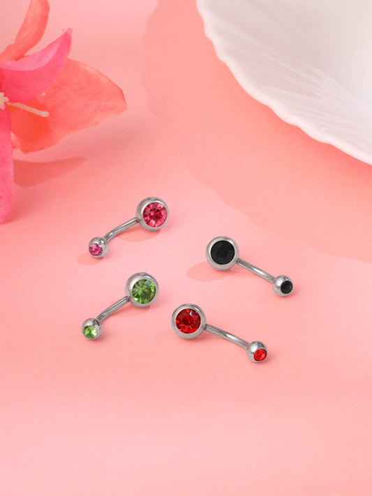 Earrings for Women and Girls | Fashion Belly Button Rings Multicolor Stone | Silver Tone Boby Piercing Jewellery | Western Stainless Steel Studs | Accessories Jewellery for Women | Birthday Gift for Girls and Women Anniversary Gift for Wife