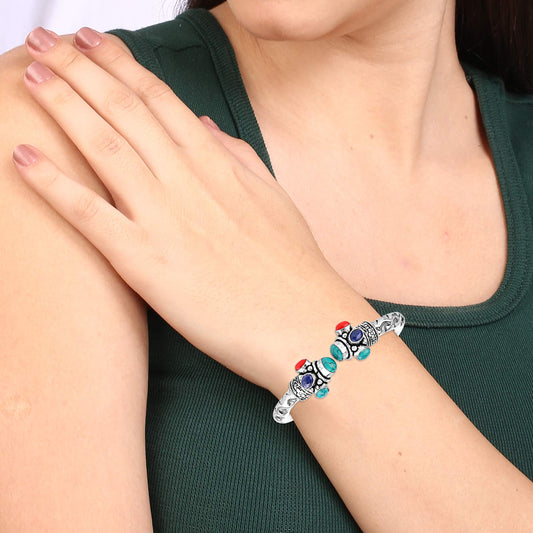 Latest Trendy Silver Bangle Kada by Kadaa for Women (Oxidized Silver, Multicolor) (YCTJBR-TRIBL-MC)