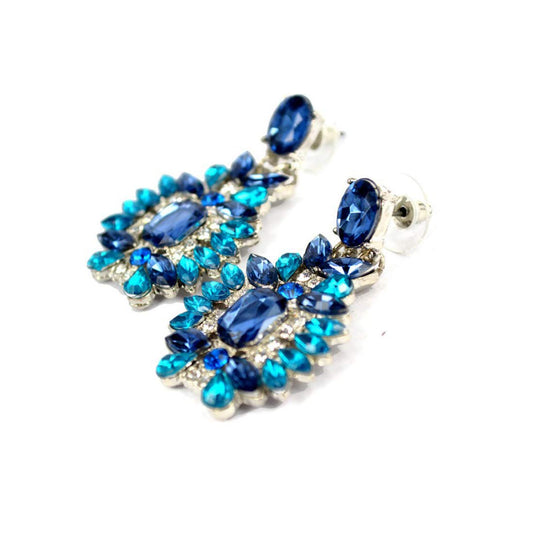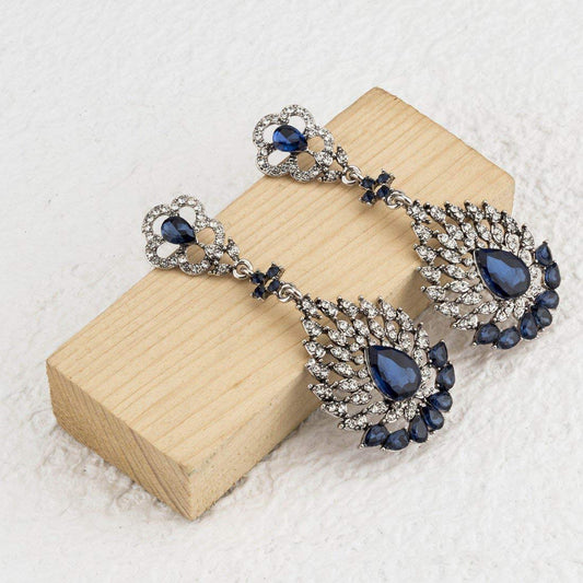 Blue Silver Plated Base Metal Crystal Elements Fresh-Arrival Stunning Floral Design Drop Earrings For Women