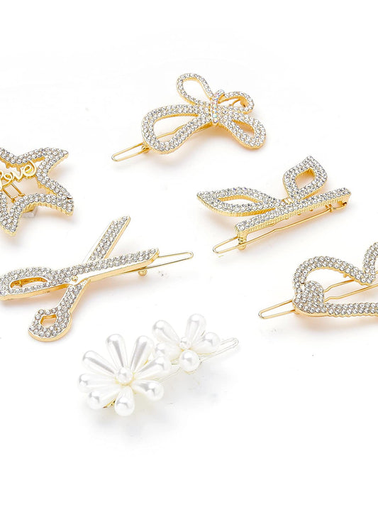 Hair Clips for Women Girls Hair Accessories for Women Golden Hair Clip 6 Pcs Hair Clips for Girls Star Bow Hairclips Alligator Clips Hair Pins for Women and Girls Gift For Women & Girls