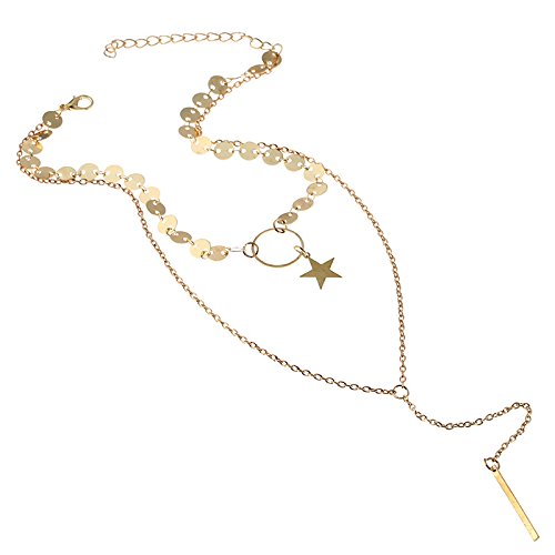 Trendy Fashion Multilayer Gold Toned Crystal Drop Choker Necklace for Women and Girls (Design 11)
