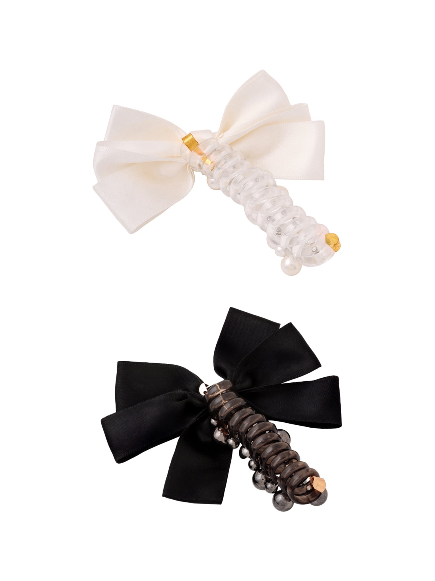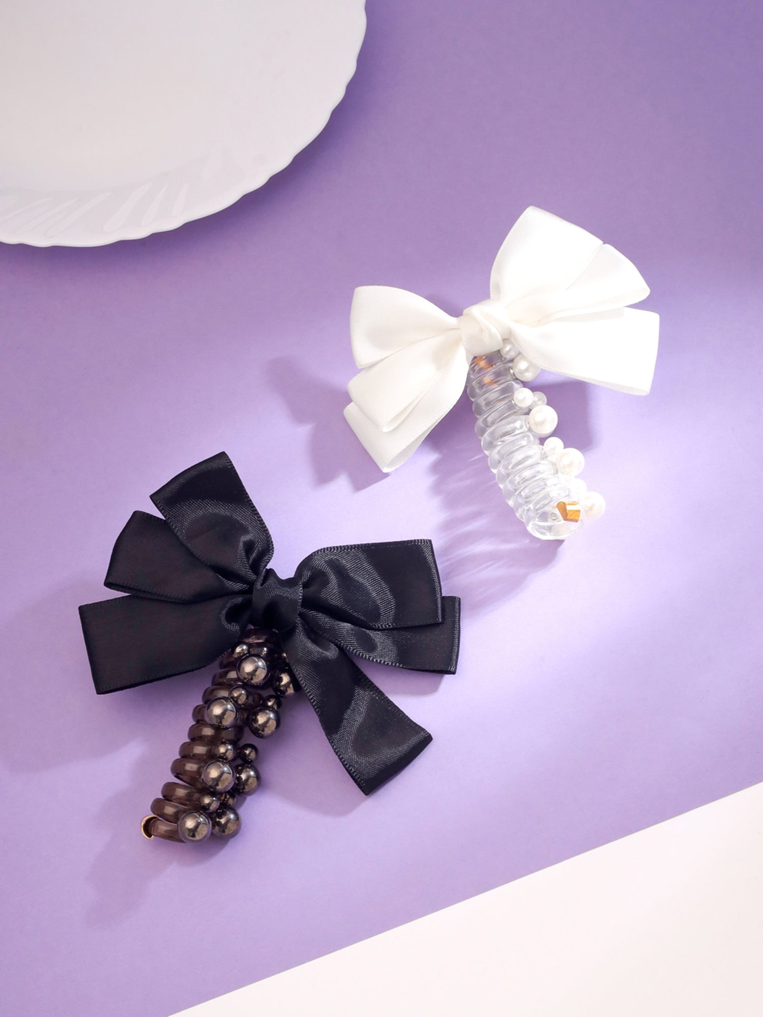 Combo: Black & White Bow Rubber Bands for Girls | Hair Accessories | 2 Pack
