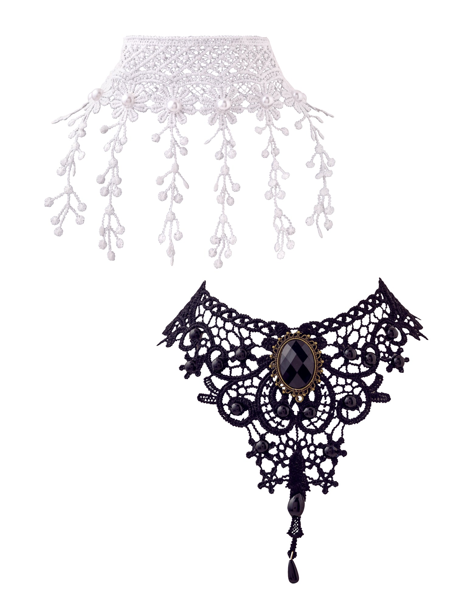 Combo: Black & White Fabric Lace Chokers - Adjustable & Elegant | Sizes: 34cm & 29.5cm | For Girls