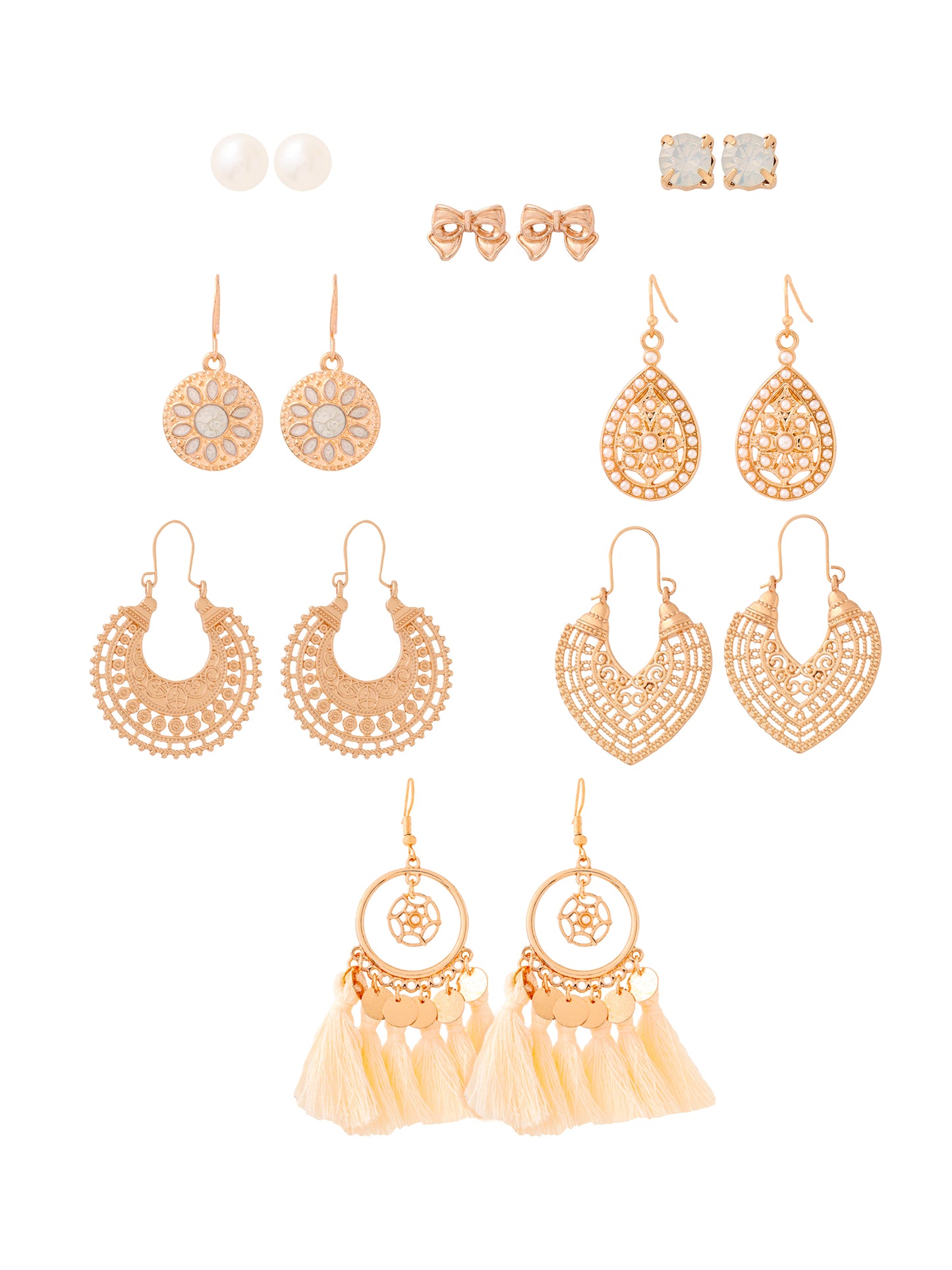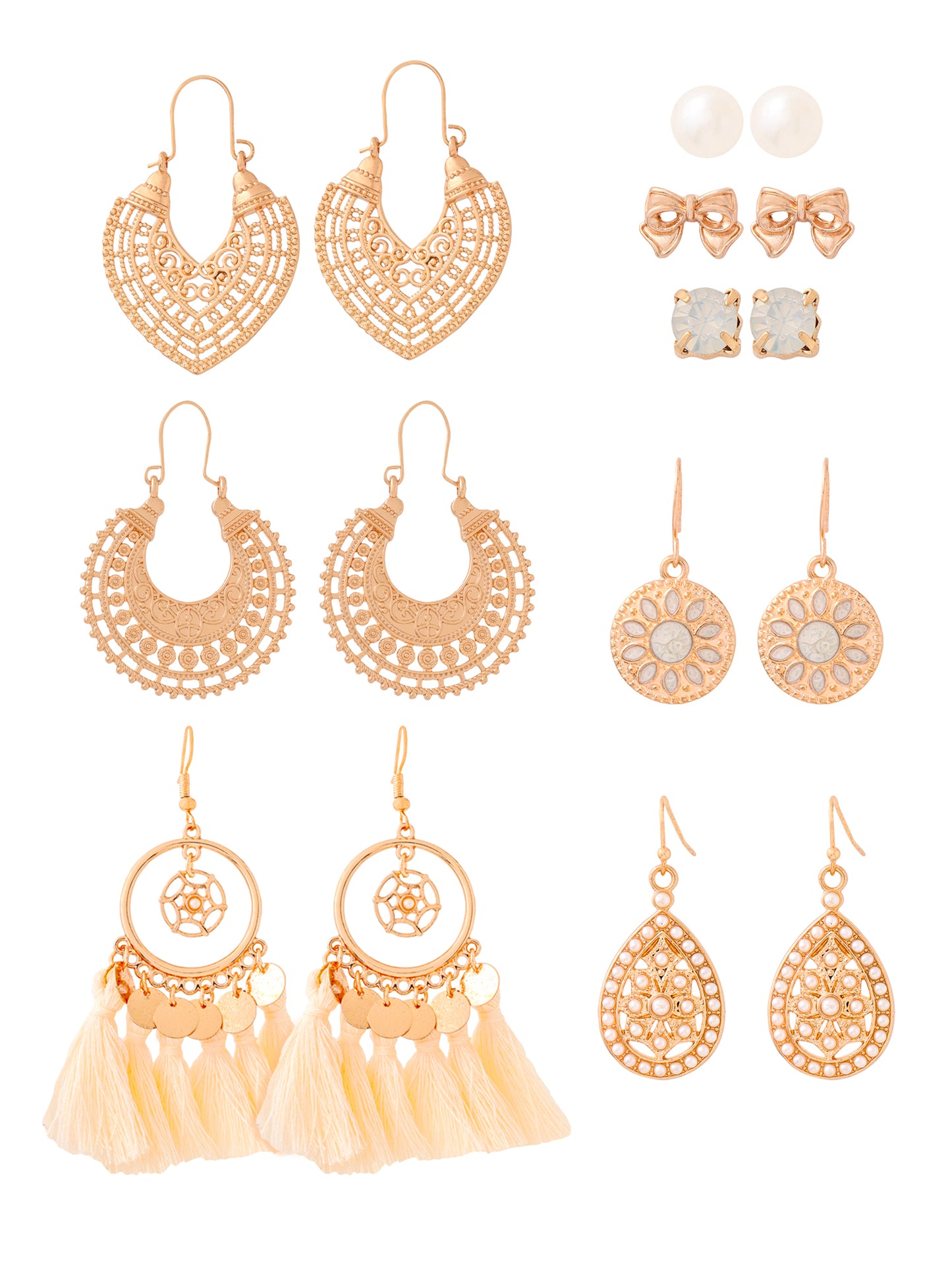 Combo: Fashion Golden Women Earrings Set with 8 Pairs | Gold Plated | Perfect Gift for Girls
