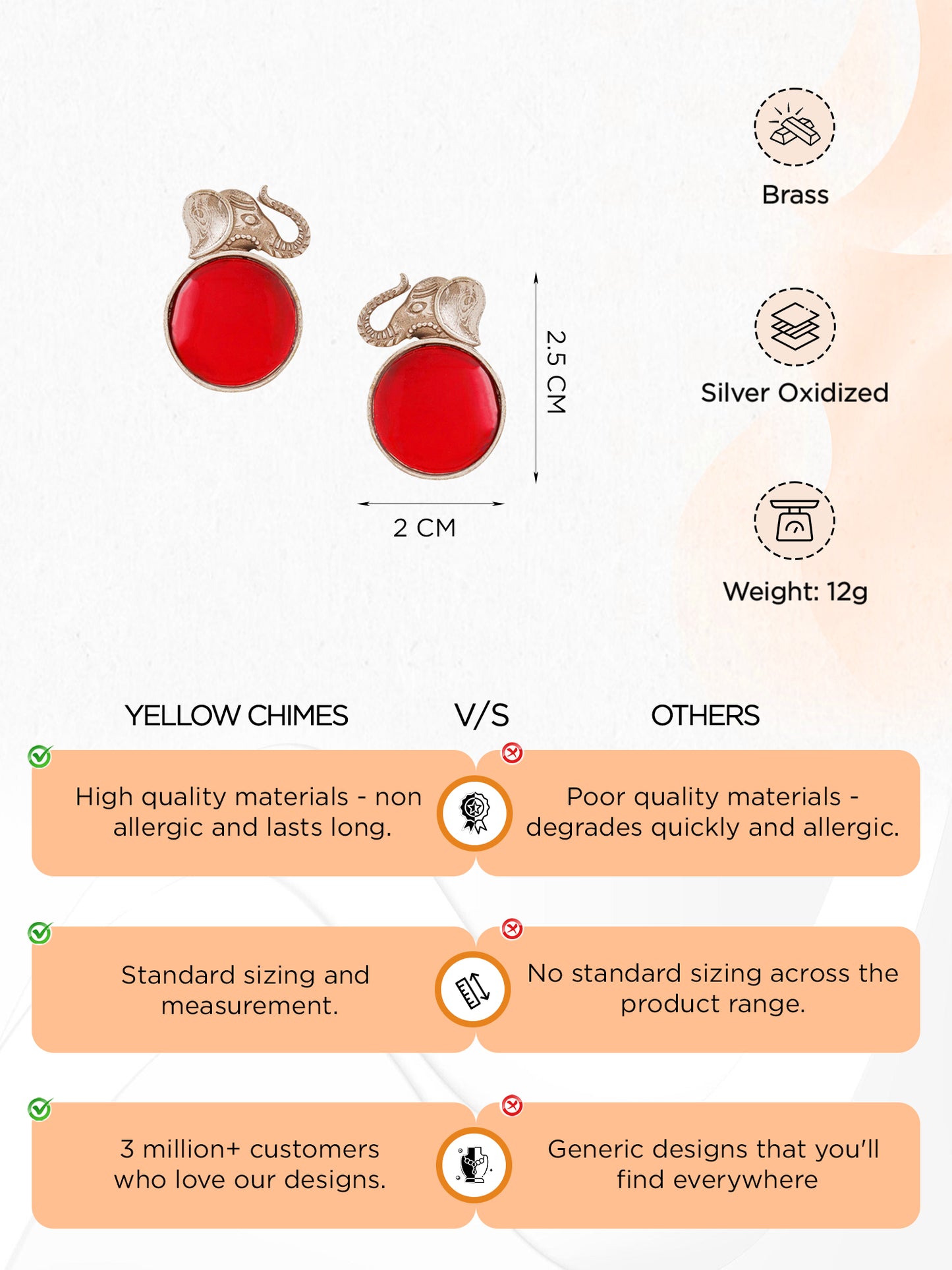 - SIZE DETAILS: Average Earrings Length - 3.2 CM; Width - 2 CM; Weight - 8.47 GR. Crafted from silver oxidised metal and designed for long wear without discomfort.