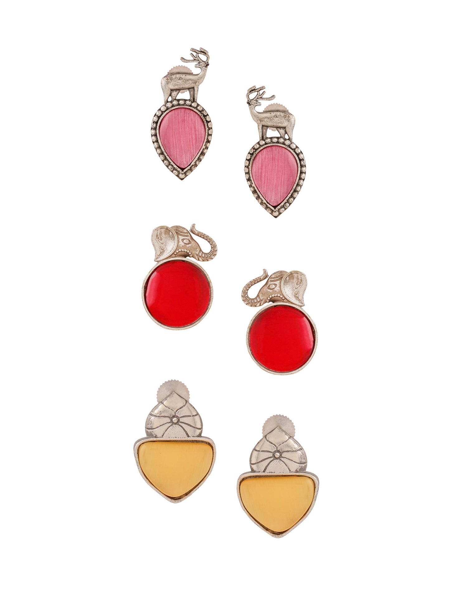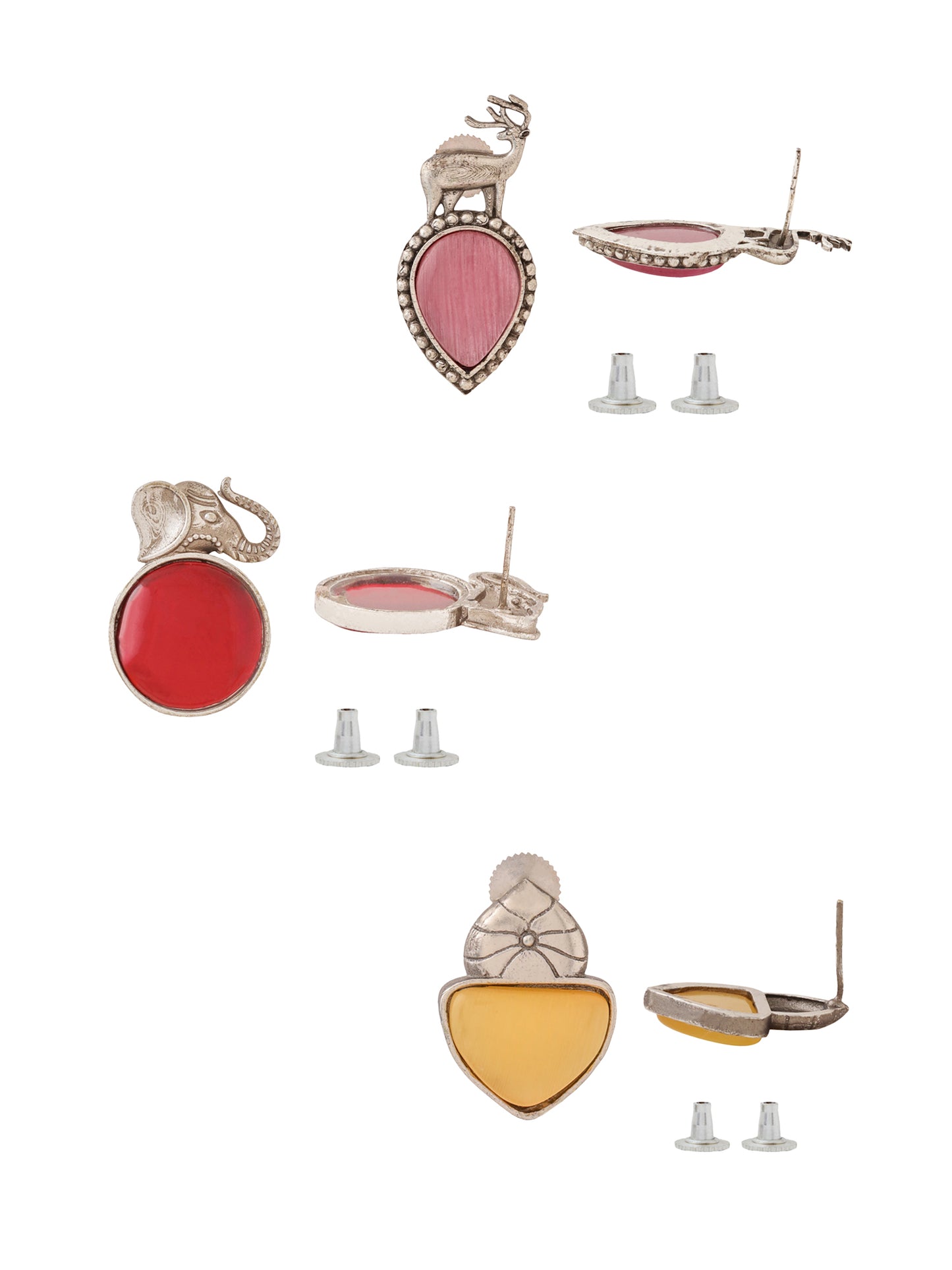 Combo of 3 Pairs: Silver Oxidised Earrings for Women | Gift-Ready | 3.2cm | Multi