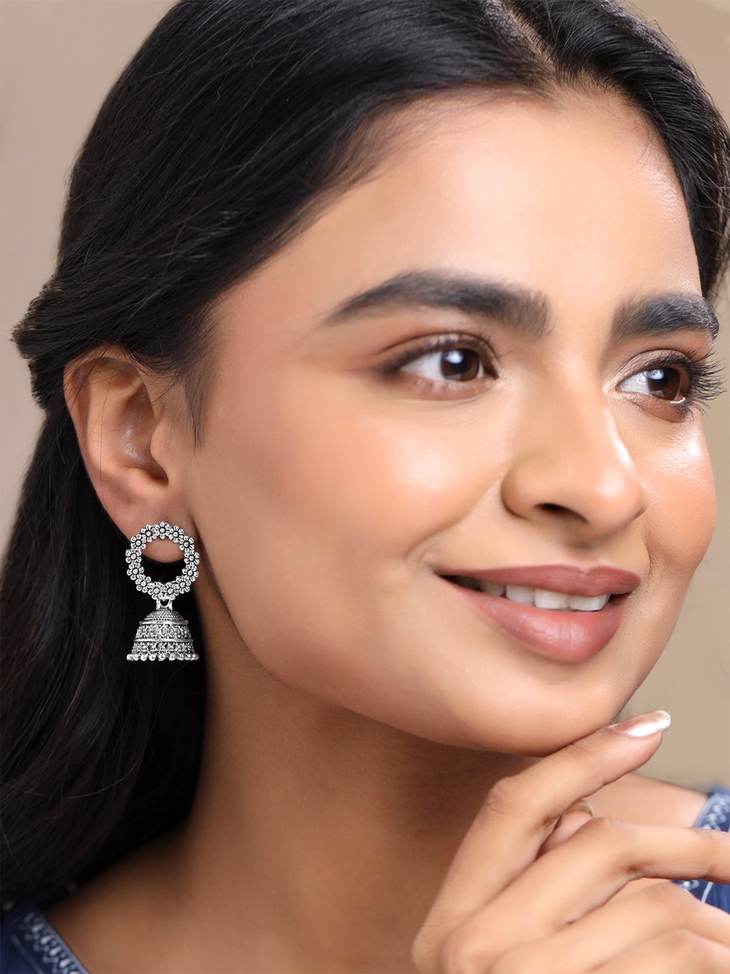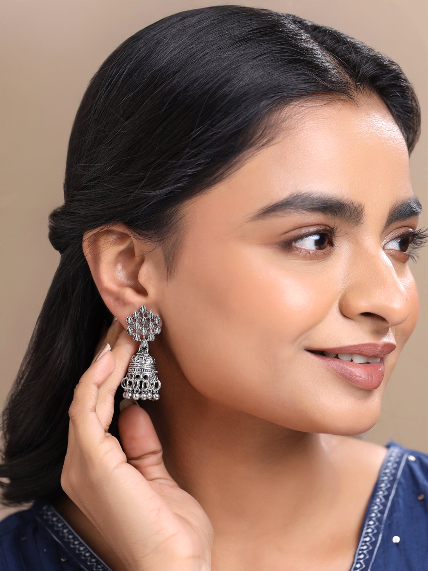 Whether for young women or mature ladies, these Silver Oxidised Jhumka Earrings redefine elegance and add charm to any outfit, making them an essential accessory for every jewelry collection.