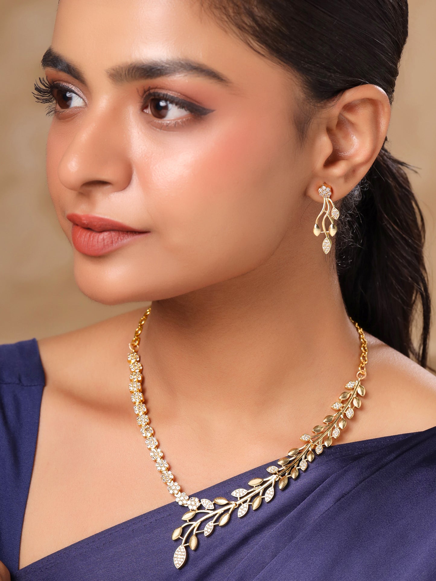 Diamond Necklace Set: White Stone Gold Plated Jewelry | Elegant Design | One Size | Gold