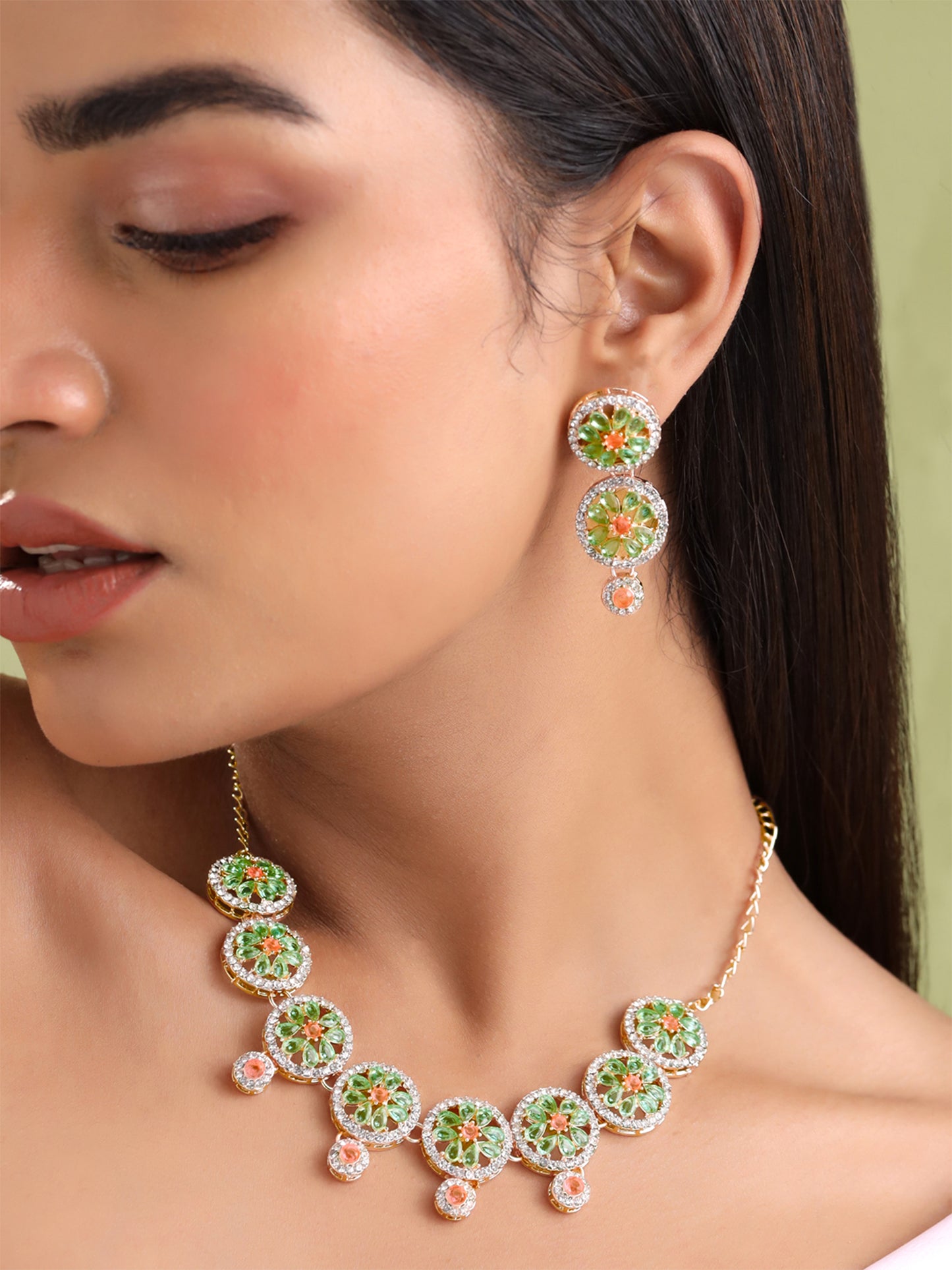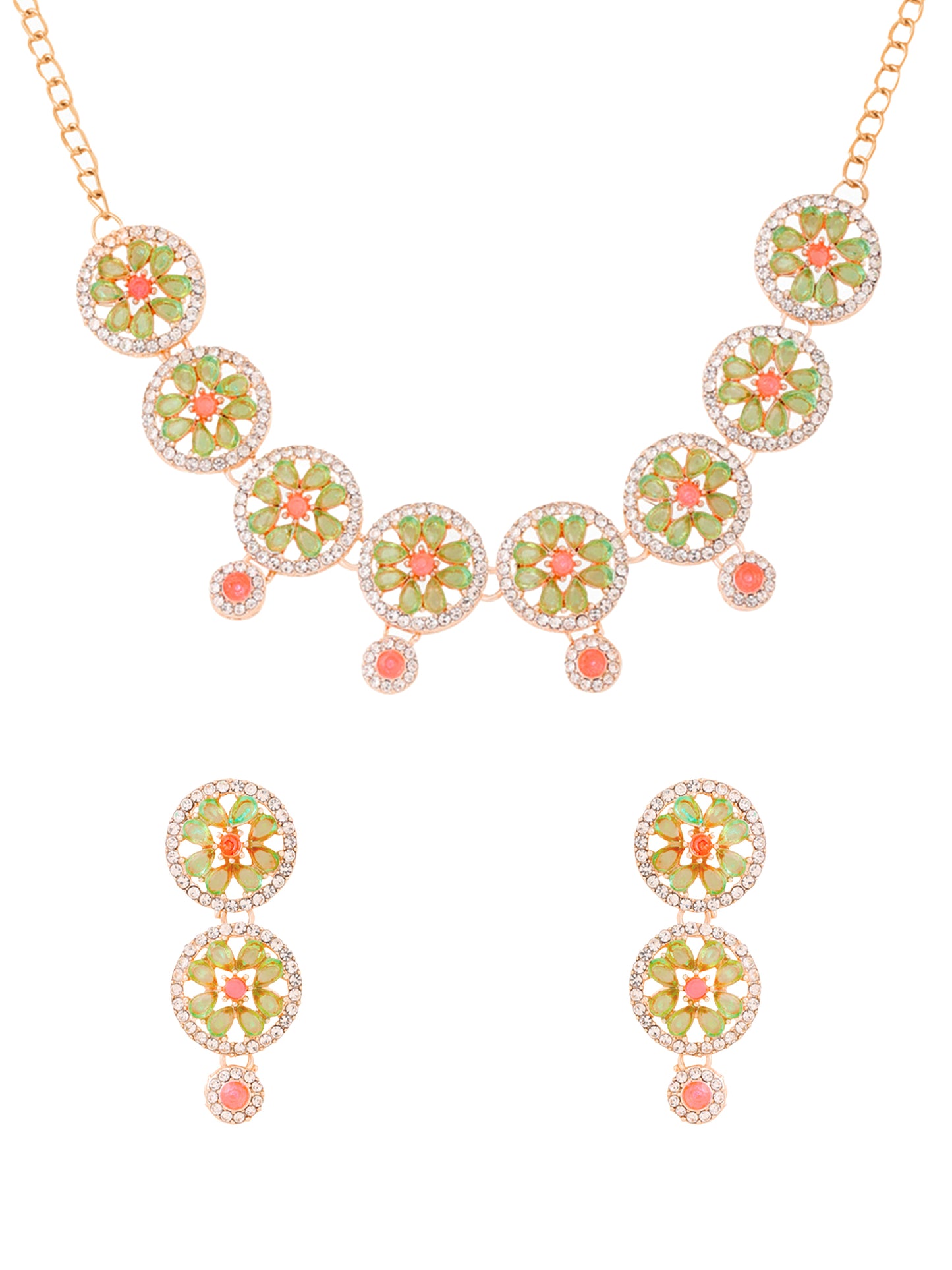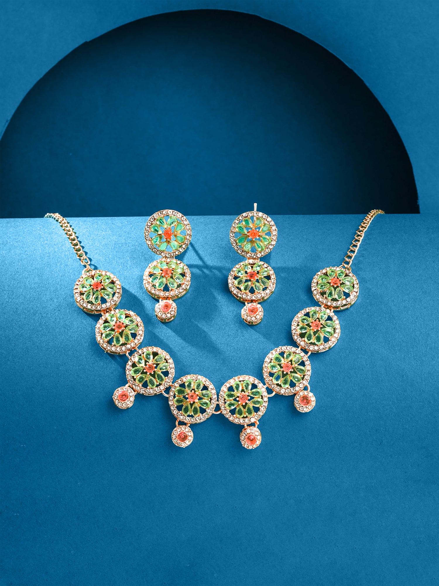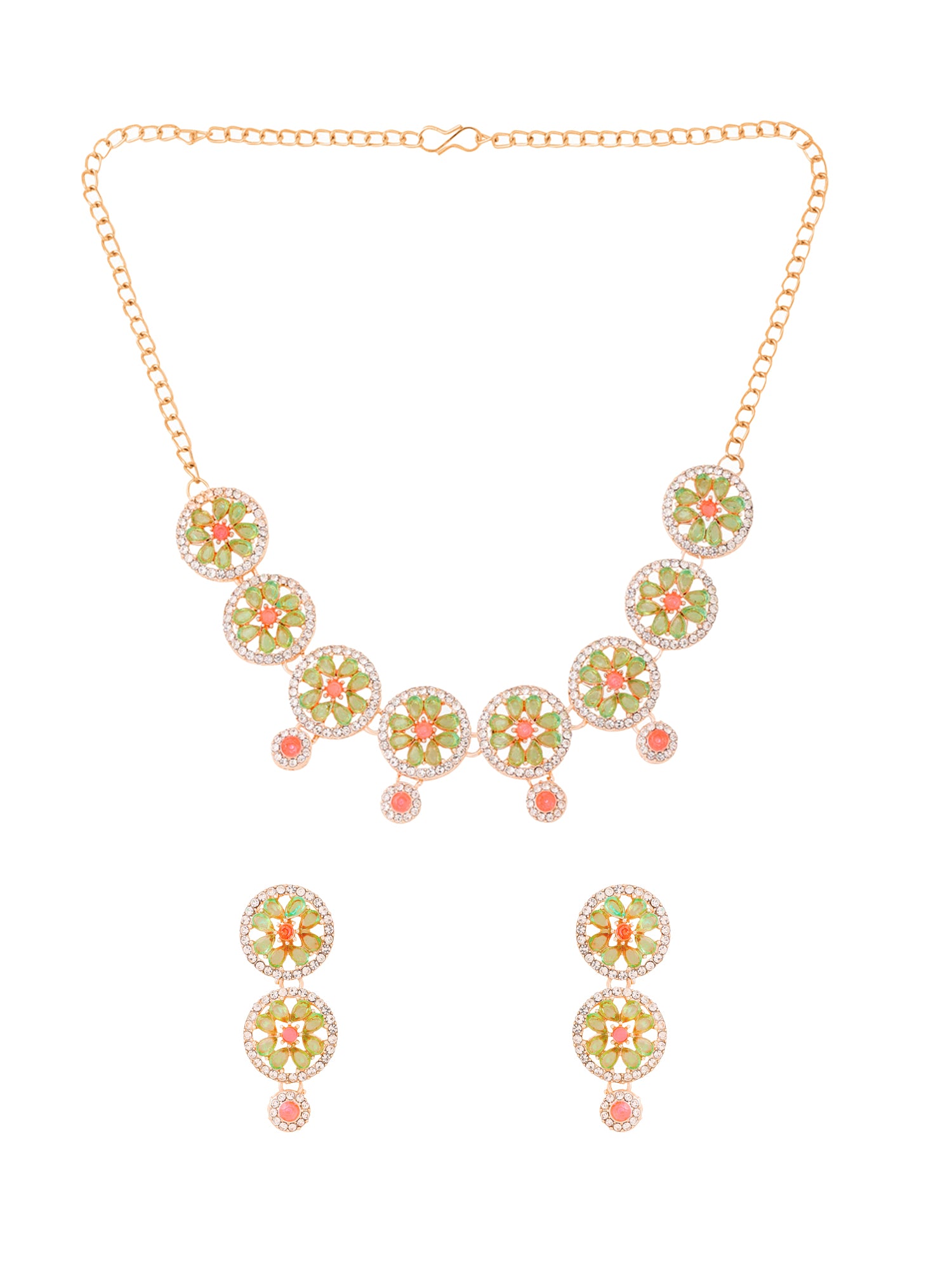 Elegant Green Jewelry Set: Necklace & Earrings | Multicolor | Latest Design