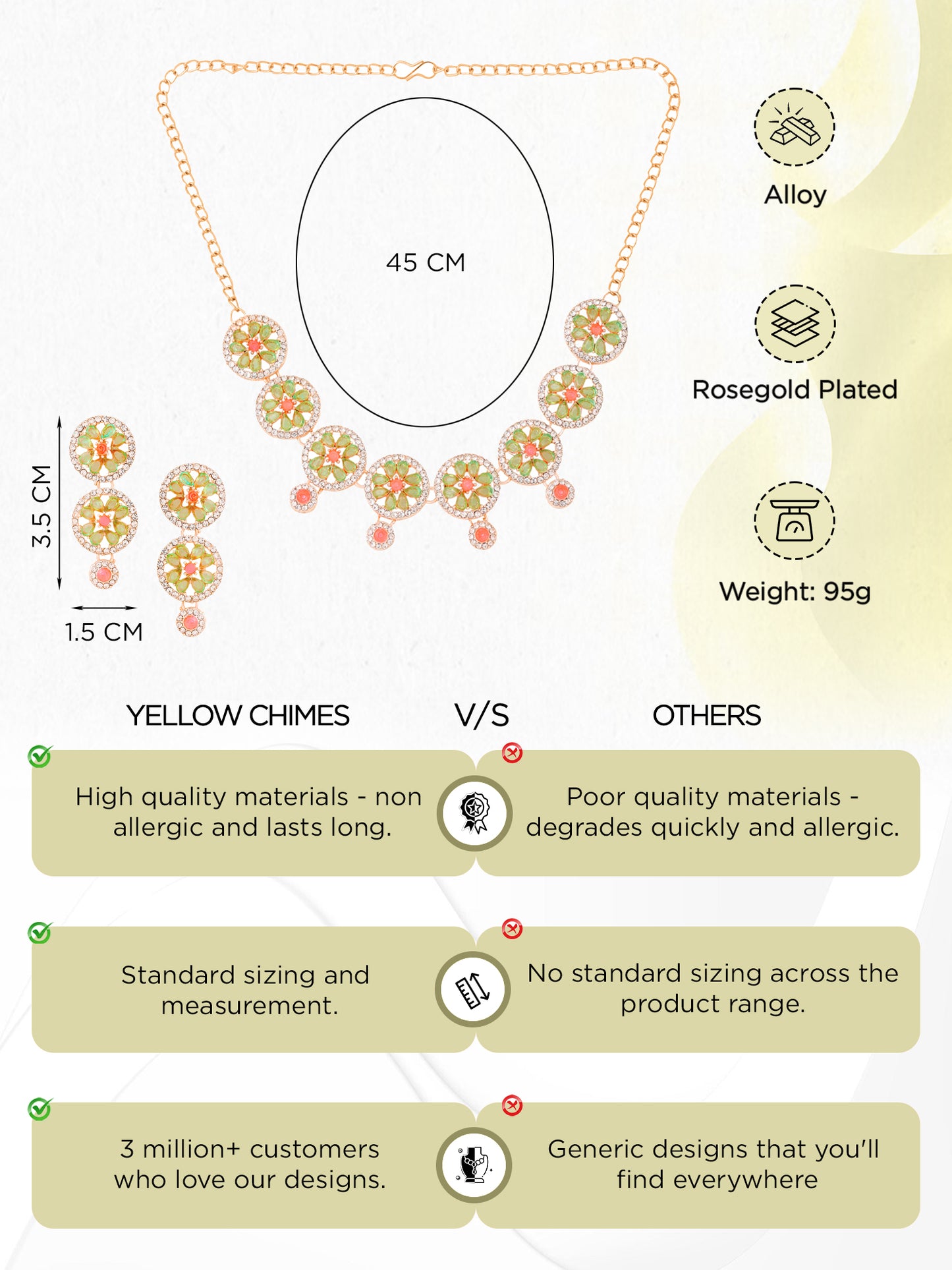 Introducing the Elegant Green Jewelry Set by Yellow Chimes, designed for those who appreciate elegance in their accessories. This exquisite set features a beautiful necklace adorned with A5 Grade crystals delivering impressive clarity and sparkle. The ensemble also includes matching drop earrings to elevate your look. Perfect for any occasion, this set is ideal for those seeking a stunning accessory that compliments both casual and formal attire.
