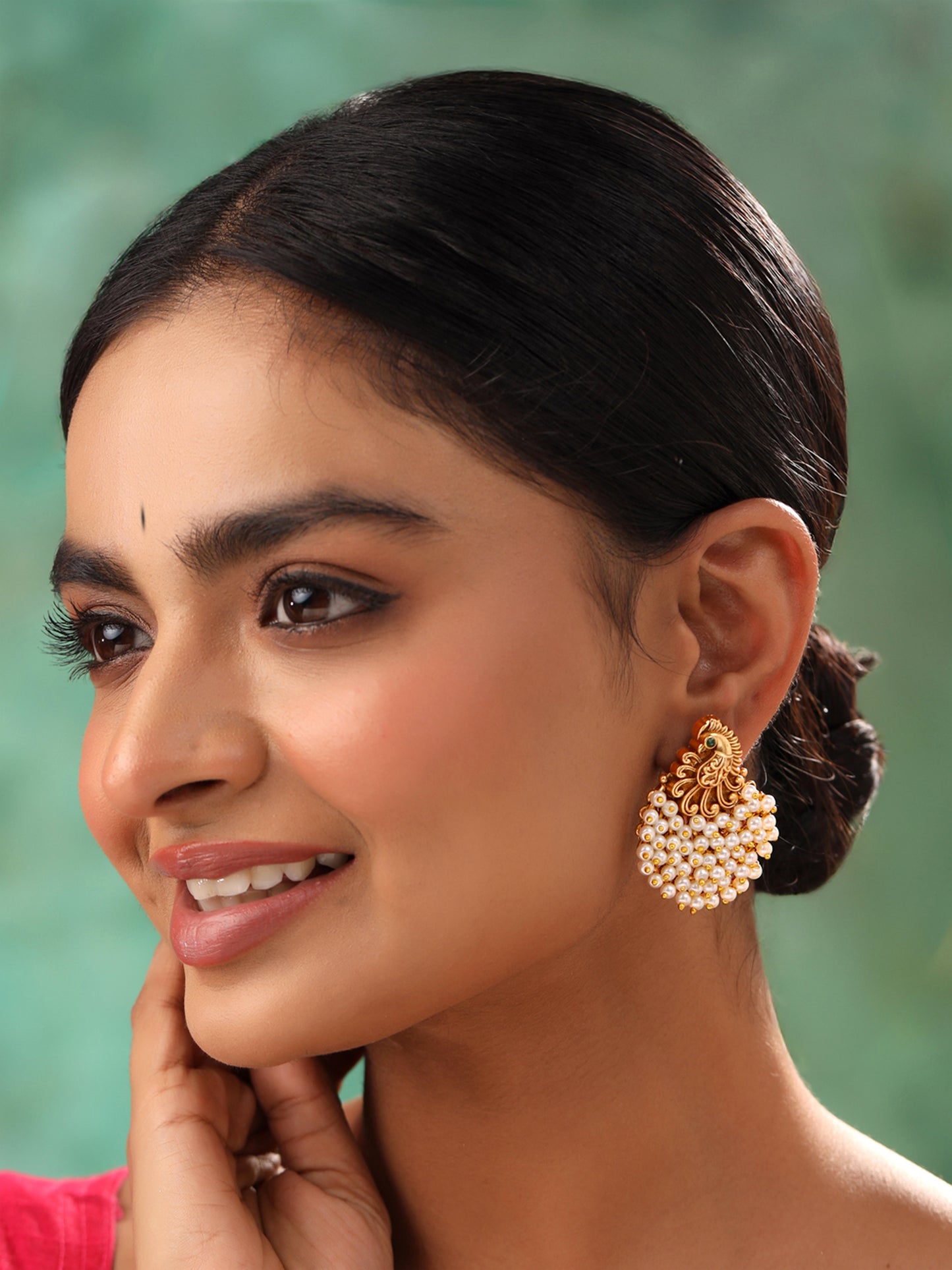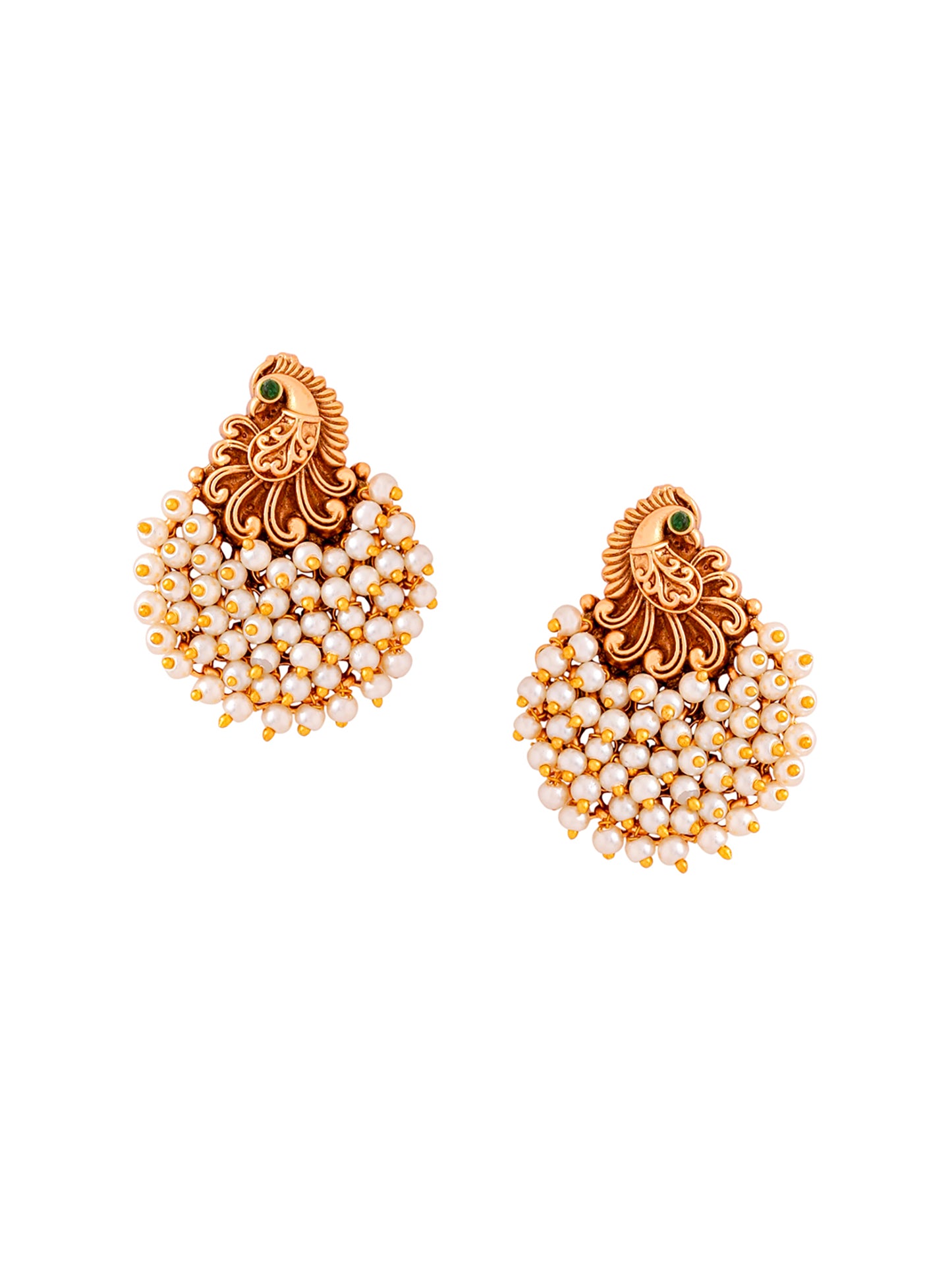 Gold Plated Pearl Drop Earrings - Peacock Design | 4.5 cm | Elegant Gift for Women